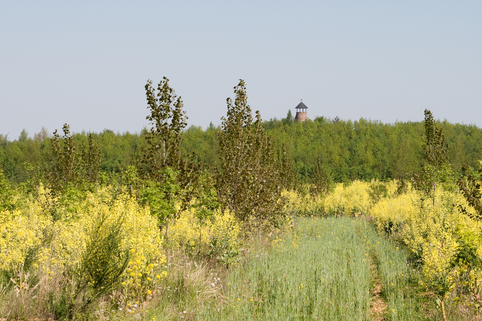 The development of landscape design in recent decades is readily traceable on the Sophienhöhe. The oldest dumps in the mining area were designed as mesa with reforested slopes and level arable land on the plateau. These dumps are strictly geometrical to keep the largest dump volume stable in the smallest possible area. Agricultural use on the level plateau was also intended on the Sophienhöhe in initial planning. But since large areas of the Bürge forests are being cleared for the Hambach opencast mine, this plan was abandoned and the Sophienhöhe as a whole is being recultivated as a forest landscape with an irregular, near-natural surface.