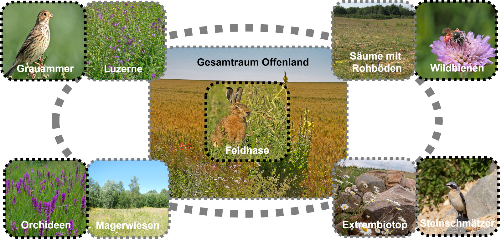 Der Feldhase ist eine Charakterart der offenen bis halboffenen Landschaft. Der Feldhase dient im Rahmen der Biodiversitätsstrategie als Leitart für die landwirtschaftliche Rekultivierung, da aufgrund der Habitatansprüche der Art wie ein umfassendes Nahrungsangebot, breites pflanzliches Nahrungsspektrum und Rückzugs- bzw. Deckungsstrukturen die Rekultivierung gut abgebildet wird.