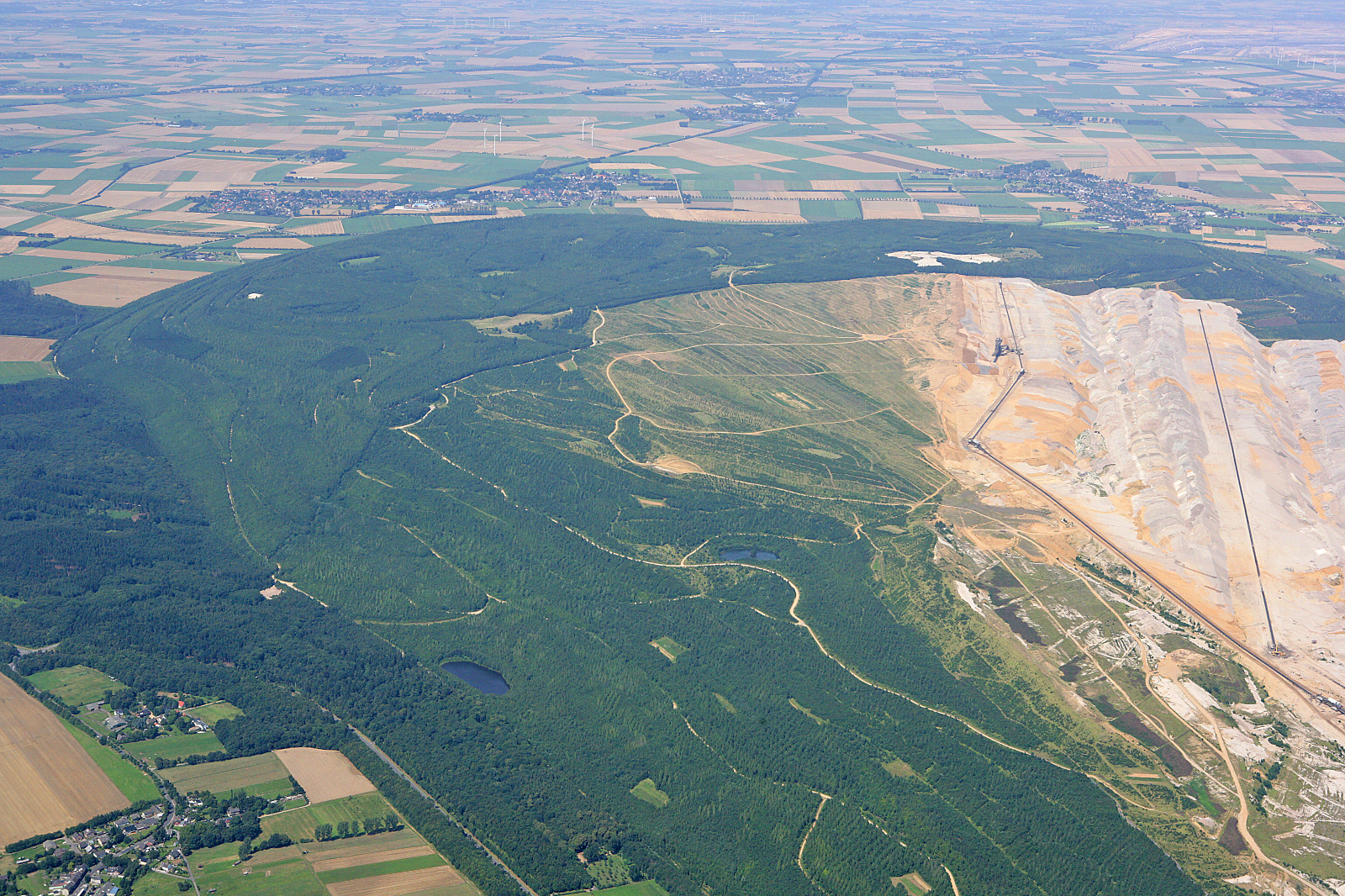 The Hambach opencast mine is located in the region of what are known as the ‘Bürgewälder’. Last remnants of these formerly extensive lowland forests were only preserved because the loess in those areas only extends to a depth of around 0.5 to 1.5m. Soils characterised by stagnant moisture developed at these sites. Agriculture is practically impossible in such soils. That is why the forest was not cleared here in the early Middle Ages, in contrast to the remaining loess landscapes. This special site feature is definitive for the recultivated area: Since forestry was the primary use before opencast mining, the restoration of forest areas is the recultivation objective here.